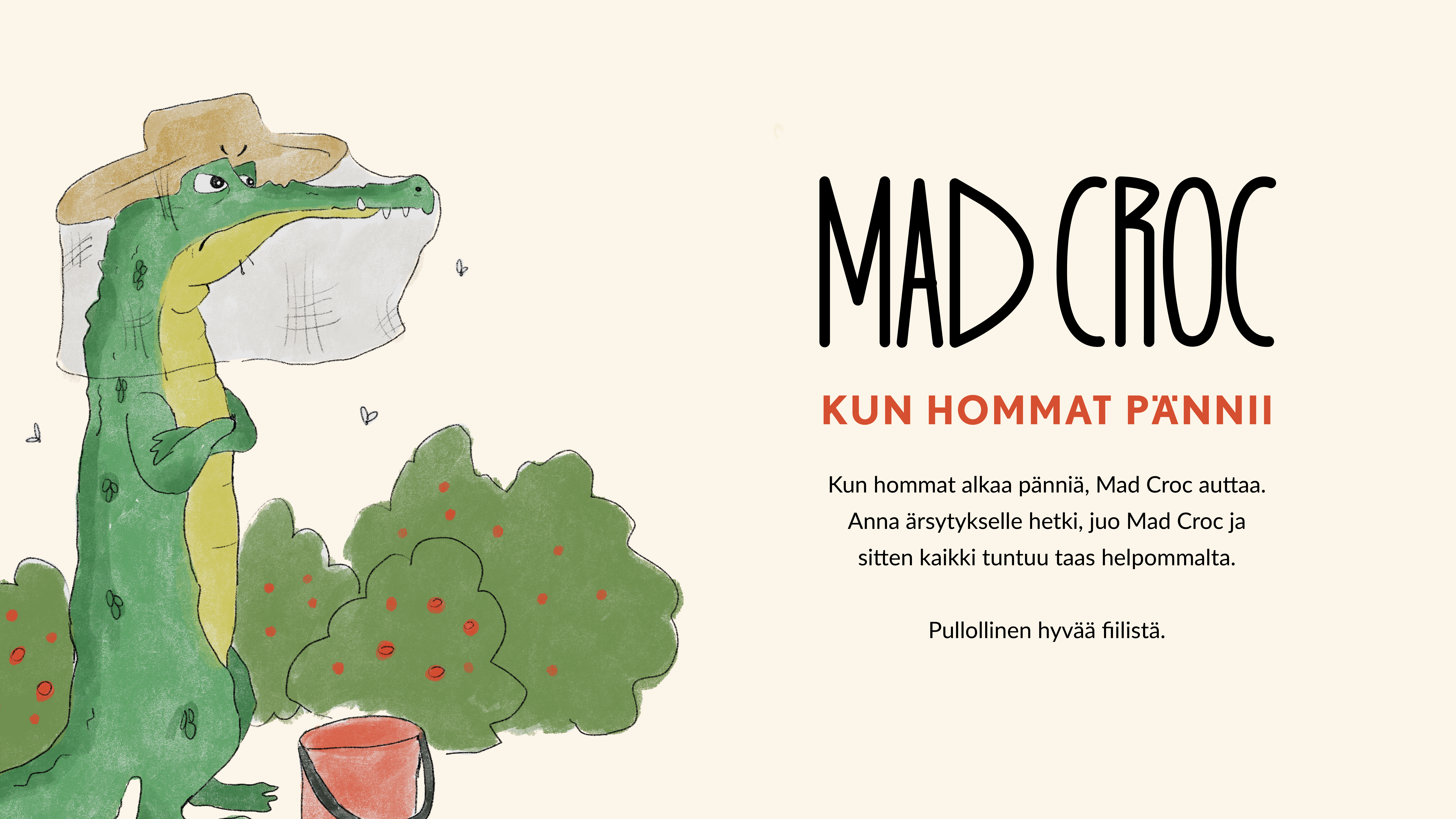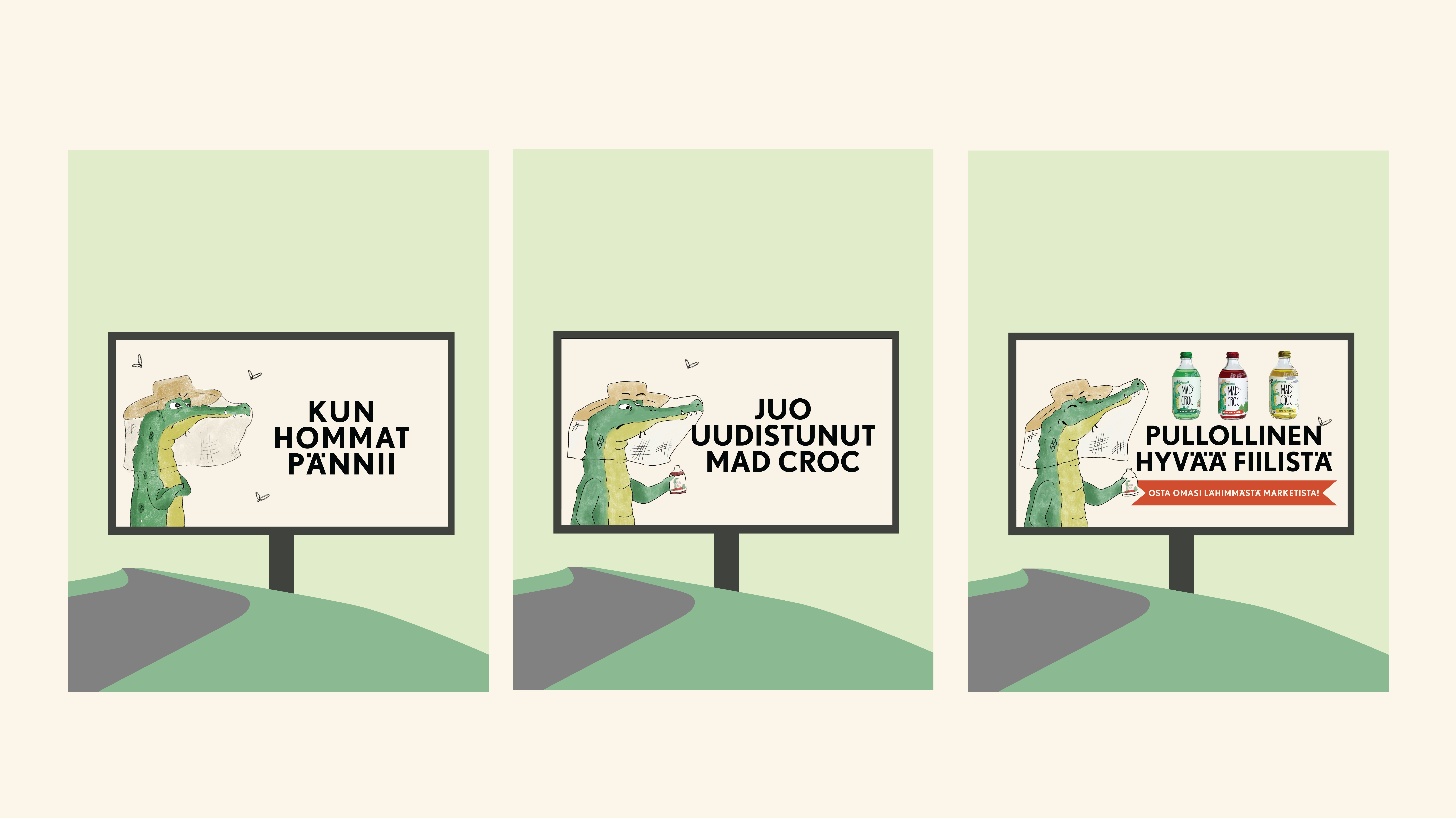 Visuaalisen identiteetin suunnittelu ja brändäys -kurssille toteutettu työ. Uudelleen brändäsimme Mad Croc-energiajuoman ulkoasun. Työ toteutettiin ryhmänä ja minä vastasin kuvituksista sekä etikettien suunnittelusta.